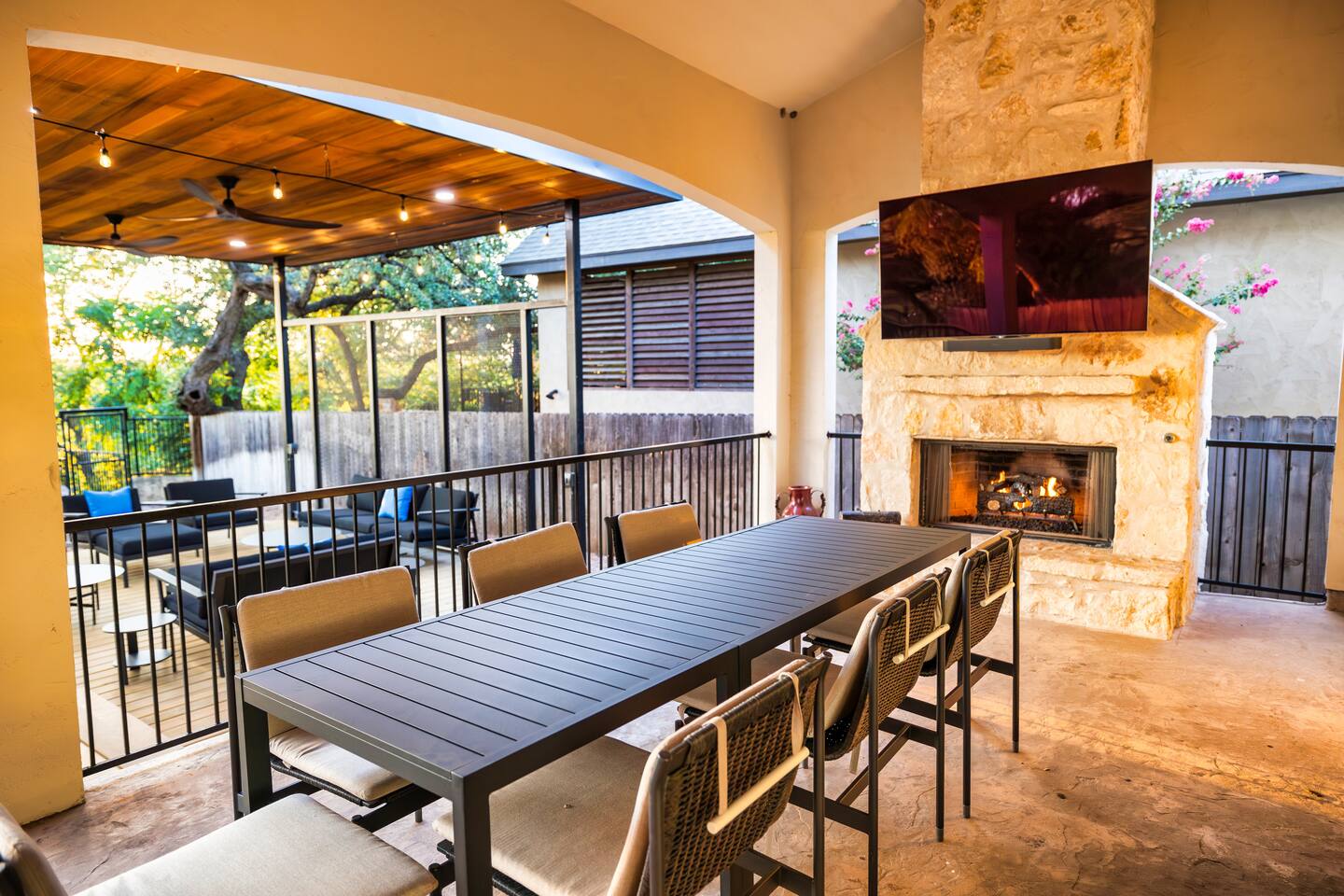 ✅ River Front ✅ Tempur Pedic Beds ✅ Huge Outdoor Covered Patio ✅ Fast Wifi ✅ Walking Distance to Gruene Hall and Restaurants ✅ Luxurious Furniture ✅ Dedicated bathroom for each bedroom ✅ Smart TVs in each room ✅ Outdoor Kitchen/BBQ ✅ Washer and Dryer ✅ Private Parking ✅ EV charging Outlet Beautiful luxurious river front home located in the middle of Gruene! 4 spacious bedrooms with each having their own dedicated full bathroom! Huge outdoor entertaining area with a covered patio. Book Now!
